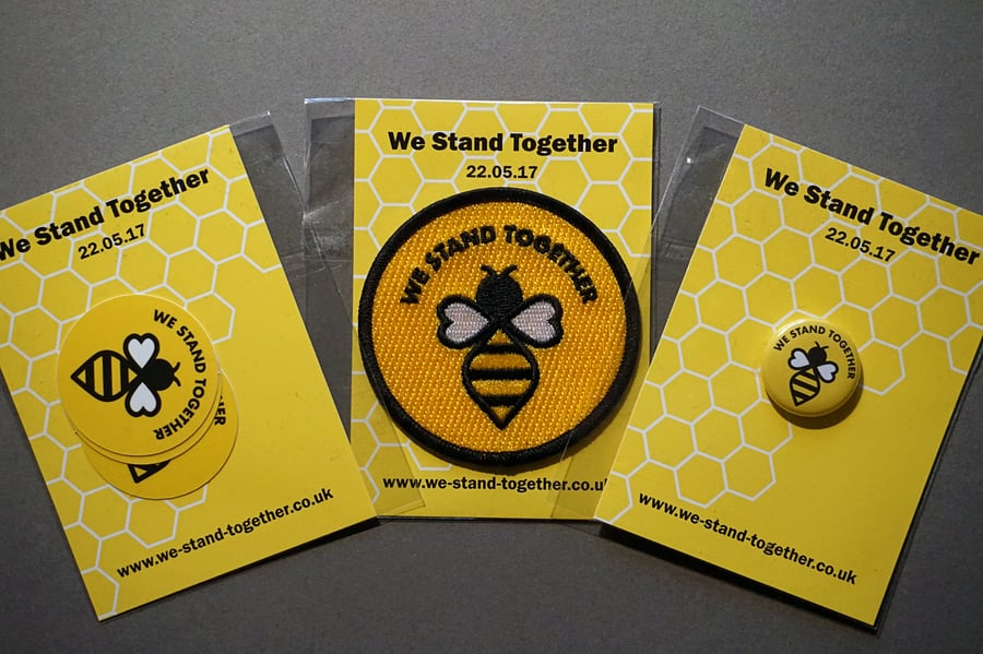 Manchester #WeStandTogether Bee Patch, Stickers and Badge Bundle